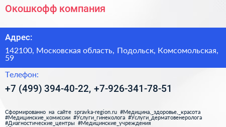 Окошкофф, компания по адресу 142100, Московская область, Подольск, Комсомольская, 59 в дальнейшем Организация, размещена в следующих категориях: