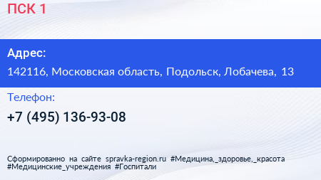 ПСК-1 по адресу 142116, Московская область, Подольск, Лобачева, 13 в дальнейшем Организация, размещена в следующих категориях: