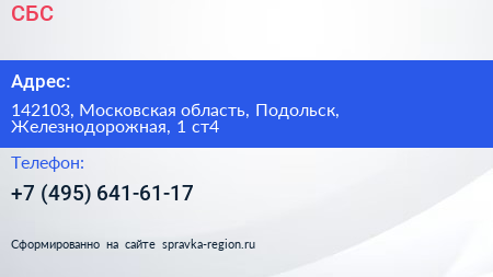 СБС по адресу 142103, Московская область, Подольск, Железнодорожная, 1 ст4 в дальнейшем Организация, размещена в следующих категориях: