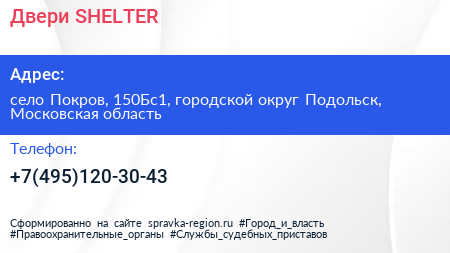 Двери SHELTER по адресу село Покров, 150Бс1, городской округ Подольск, Московская область в дальнейшем Организация, размещена в следующих категориях: