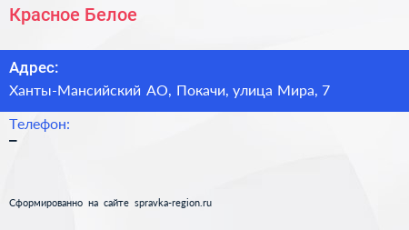 Красное & Белое по адресу Ханты-Мансийский АО, Покачи, улица Мира, 7 в дальнейшем Организация, размещена в следующих категориях: