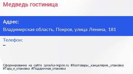 Медведь, гостиница по адресу Владимирская область, Покров, улица Ленина, 181 в дальнейшем Организация, размещена в следующих категориях: