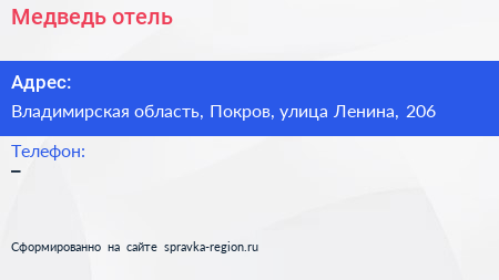 Медведь, отель по адресу Владимирская область, Покров, улица Ленина, 206 в дальнейшем Организация, размещена в следующих категориях:
