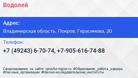 Водолей по адресу Владимирская область, Покров, Герасимова, 20 в дальнейшем Организация, размещена в следующих категориях: