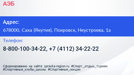 АЭБ по адресу 678000, Саха (Якутия), Покровск, Неустроева, 1а в дальнейшем Организация, размещена в следующих категориях: