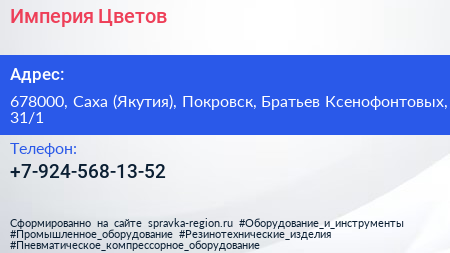 Империя Цветов по адресу 678000, Саха (Якутия), Покровск, Братьев Ксенофонтовых, 31/1 в дальнейшем Организация, размещена в следующих категориях:
