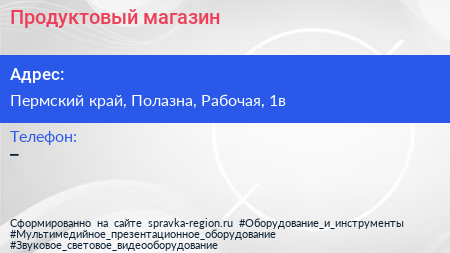 Продуктовый магазин по адресу Пермский край, Полазна, Рабочая, 1в в дальнейшем Организация, размещена в следующих категориях: