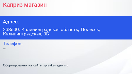 Каприз, магазин по адресу 238630, Калининградская область, Полесск, Калининградская, 3Б в дальнейшем Организация, размещена в следующих категориях:
