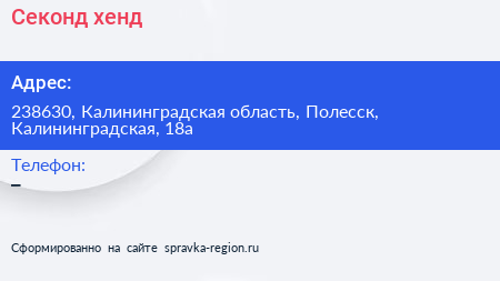 Секонд-хенд по адресу 238630, Калининградская область, Полесск, Калининградская, 18а в дальнейшем Организация, размещена в следующих категориях: