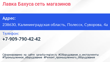 Лавка Бахуса, сеть магазинов по адресу 238630, Калининградская область, Полесск, Суворова, 4а в дальнейшем Организация, размещена в следующих категориях: