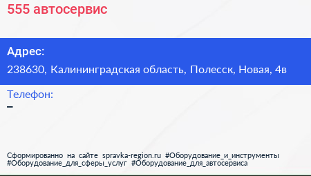 555, автосервис по адресу 238630, Калининградская область, Полесск, Новая, 4в в дальнейшем Организация, размещена в следующих категориях: