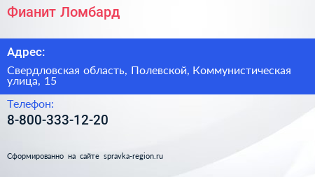 Фианит-Ломбард по адресу Свердловская область, Полевской, Коммунистическая улица, 15 в дальнейшем Организация, размещена в следующих категориях: