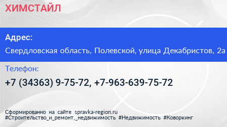 ХИМСТАЙЛ по адресу Свердловская область, Полевской, улица Декабристов, 2а в дальнейшем Организация, размещена в следующих категориях: