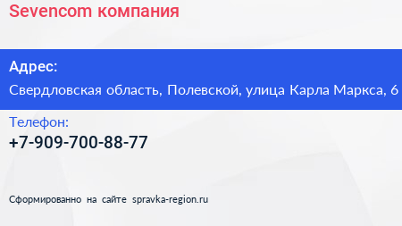 Sevencom, компания по адресу Свердловская область, Полевской, улица Карла Маркса, 6 в дальнейшем Организация, размещена в следующих категориях: