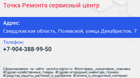 Точка Ремонта, сервисный центр по адресу Свердловская область, Полевской, улица Декабристов, 7 в дальнейшем Организация, размещена в следующих категориях: