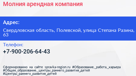 Молния, арендная компания по адресу Свердловская область, Полевской, улица Степана Разина, 63 в дальнейшем Организация, размещена в следующих категориях: