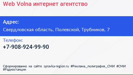 Web-Volna, интернет-агентство по адресу Свердловская область, Полевской, Трубников, 7 в дальнейшем Организация, размещена в следующих категориях: