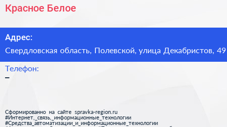 Красное & Белое по адресу Свердловская область, Полевской, улица Декабристов, 49 в дальнейшем Организация, размещена в следующих категориях:
