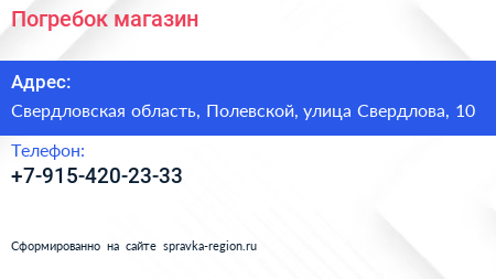 Погребок, магазин по адресу Свердловская область, Полевской, улица Свердлова, 10 в дальнейшем Организация, размещена в следующих категориях: