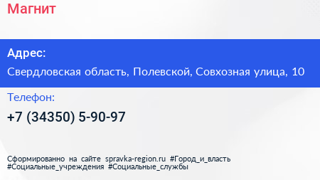 Магнит по адресу Свердловская область, Полевской, Совхозная улица, 10 в дальнейшем Организация, размещена в следующих категориях:
