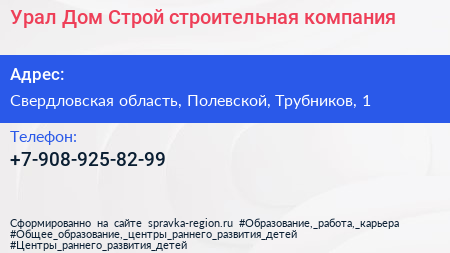 Урал Дом Строй, строительная компания по адресу Свердловская область, Полевской, Трубников, 1 в дальнейшем Организация, размещена в следующих категориях:
