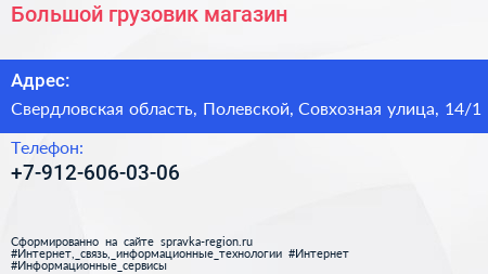 Большой грузовик, магазин по адресу Свердловская область, Полевской, Совхозная улица, 14/1 в дальнейшем Организация, размещена в следующих категориях:
