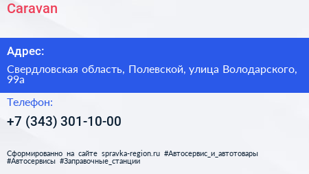 Caravan по адресу Свердловская область, Полевской, улица Володарского, 99а в дальнейшем Организация, размещена в следующих категориях: