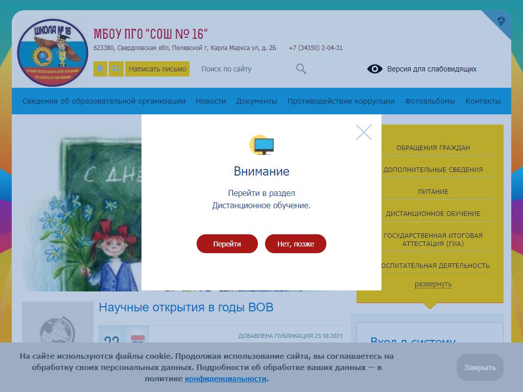 Средняя общеобразовательная школа №16 им. заслуженного учителя РСФСР Г.И. Чебыкина по адресу Свердловская область, Полевской, улица Карла Маркса, 2Б в дальнейшем Организация, размещена в следующих категориях: