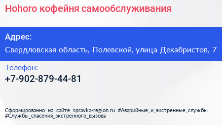 Hohoro, кофейня самообслуживания по адресу Свердловская область, Полевской, улица Декабристов, 7 в дальнейшем Организация, размещена в следующих категориях: