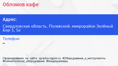 Обломов, кафе по адресу Свердловская область, Полевской, микрорайон Зелёный Бор-1, 5а в дальнейшем Организация, размещена в следующих категориях: