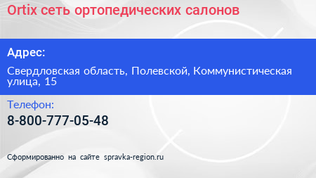 Ortix, сеть ортопедических салонов по адресу Свердловская область, Полевской, Коммунистическая улица, 15 в дальнейшем Организация, размещена в следующих категориях: