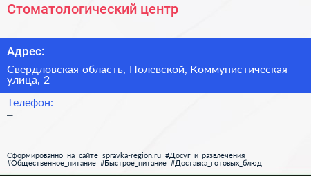 Стоматологический центр по адресу Свердловская область, Полевской, Коммунистическая улица, 2 в дальнейшем Организация, размещена в следующих категориях: