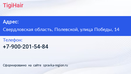 TigiHair по адресу Свердловская область, Полевской, улица Победы, 14 в дальнейшем Организация, размещена в следующих категориях:
