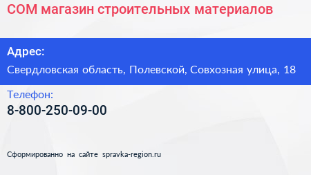 СОМ, магазин строительных материалов по адресу Свердловская область, Полевской, Совхозная улица, 18 в дальнейшем Организация, размещена в следующих категориях:
