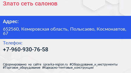 Злато, сеть салонов по адресу 652560, Кемеровская область, Полысаево, Космонавтов, 67 в дальнейшем Организация, размещена в следующих категориях: