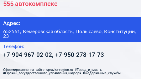 555, автокомплекс по адресу 652561, Кемеровская область, Полысаево, Конституции, 23 в дальнейшем Организация, размещена в следующих категориях: