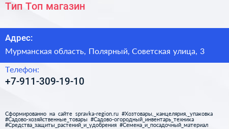 Тип-Топ, магазин по адресу Мурманская область, Полярный, Советская улица, 3 в дальнейшем Организация, размещена в следующих категориях: