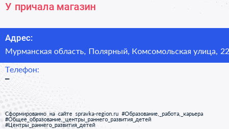 У причала, магазин по адресу Мурманская область, Полярный, Комсомольская улица, 22 в дальнейшем Организация, размещена в следующих категориях: