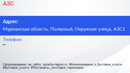 АЗС по адресу Мурманская область, Полярный, Окружная улица, АЗС1 в дальнейшем Организация, размещена в следующих категориях: