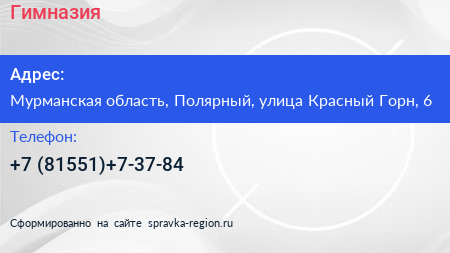 Гимназия по адресу Мурманская область, Полярный, улица Красный Горн, 6 в дальнейшем Организация, размещена в следующих категориях: