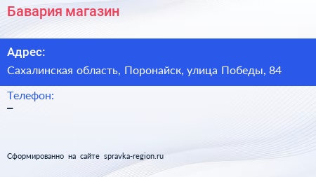 Бавария, магазин по адресу Сахалинская область, Поронайск, улица Победы, 84 в дальнейшем Организация, размещена в следующих категориях: