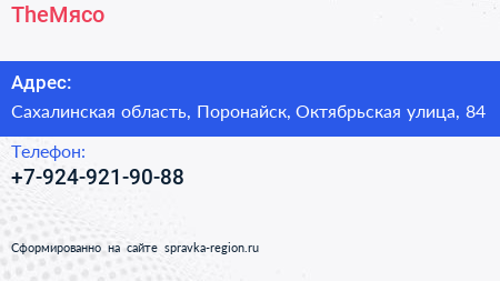 TheМясо по адресу Сахалинская область, Поронайск, Октябрьская улица, 84 в дальнейшем Организация, размещена в следующих категориях: