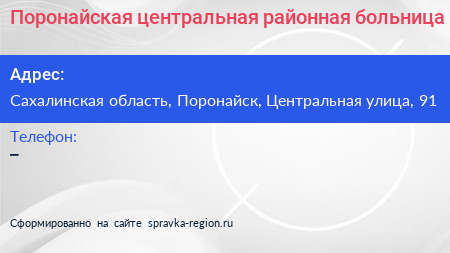 Поронайская центральная районная больница по адресу Сахалинская область, Поронайск, Центральная улица, 91 в дальнейшем Организация, размещена в следующих категориях: