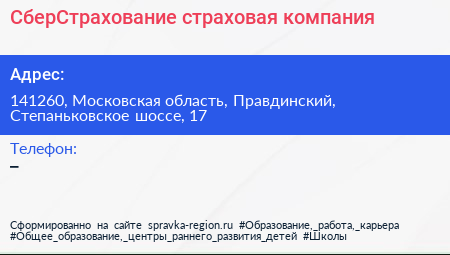 СберСтрахование, страховая компания по адресу 141260, Московская область, Правдинский, Степаньковское шоссе, 17 в дальнейшем Организация, размещена в следующих категориях: