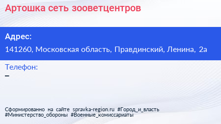 Артошка, сеть зооветцентров по адресу 141260, Московская область, Правдинский, Ленина, 2а в дальнейшем Организация, размещена в следующих категориях: