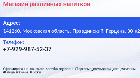 Магазин разливных напитков по адресу 141260, Московская область, Правдинский, Герцена, 30 к2 в дальнейшем Организация, размещена в следующих категориях: