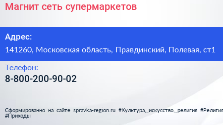 Магнит, сеть супермаркетов по адресу 141260, Московская область, Правдинский, Полевая, ст1 в дальнейшем Организация, размещена в следующих категориях: