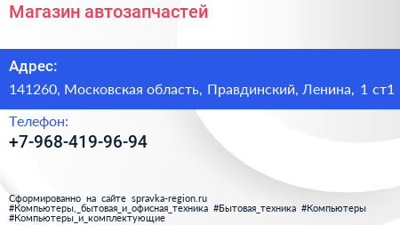 Магазин автозапчастей по адресу 141260, Московская область, Правдинский, Ленина, 1 ст1 в дальнейшем Организация, размещена в следующих категориях:
