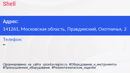 Shell по адресу 141261, Московская область, Правдинский, Охотничья, 2 в дальнейшем Организация, размещена в следующих категориях: