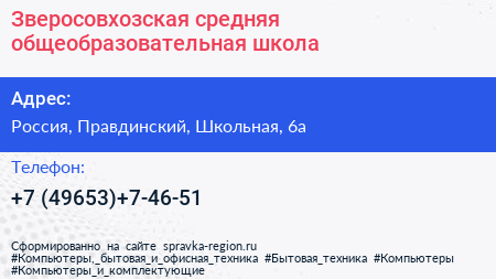 Зверосовхозская средняя общеобразовательная школа по адресу Школа №4. Основное здание, Школьная улица, посёлок Зверосовхоза, Пушкинский городской округ, Московская область, Центральный федеральный округ, 141214, Россия в дальнейшем Организация, размещена в следующих категориях: